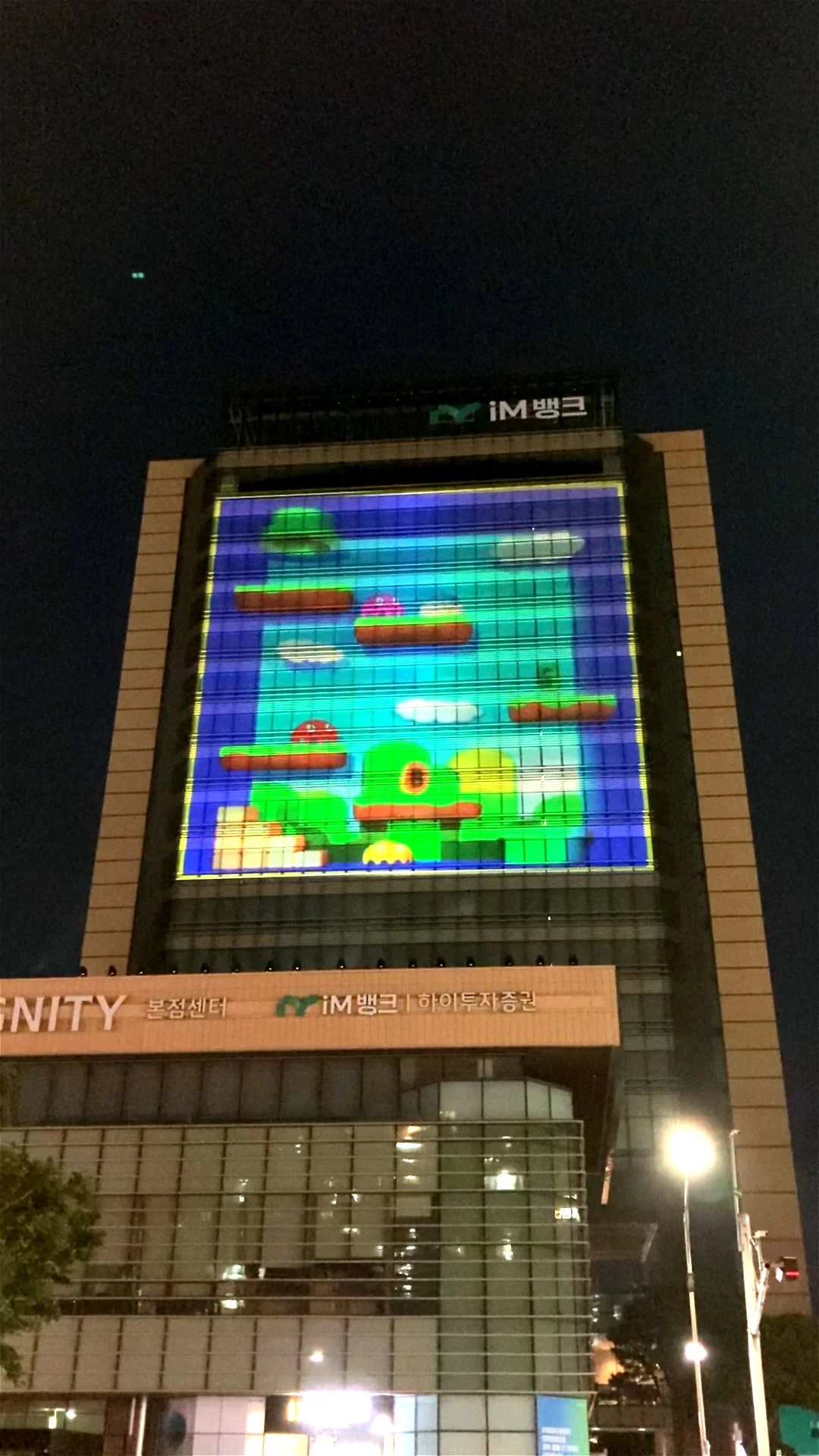 대구은행의 새 브랜드 iM뱅크를 기념해서 대구광역시 수성구 대구은행 본점에서 미디어파사드를 제작하였습니다. Maya를 활용하여 캐릭터 애니메이션 작업을 진행하였습니다. 그리고 미드저니와 크레아ai를 활용하여 이미지를 생성하고 모션작업을 진행했습니다.